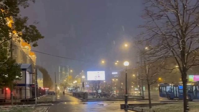 Тем временем в Москве выпал снег