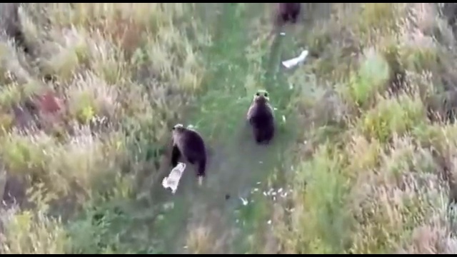 Этот ролик был снят при помощи квадрокоптера в Усть-Камчатске и на нем можно увидеть семейство медведей и их собственного пса. По словам местных жителей, щенок подружился с медведями еще весной этого года, а теперь ушел вместе с ними в лес. Вот такая вот дружба животных.