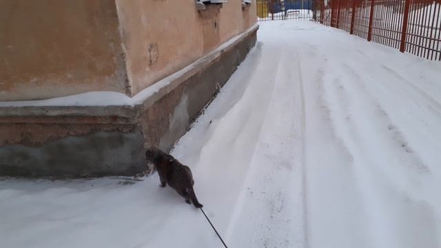 Гуляет по свежему снежку, улица, зима, с удовольствием.