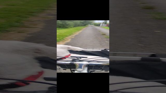 Катаюсь с Тошей на велосипеде до пятёрочки по своему СНТ, Тоша велособака в корзине 🧺