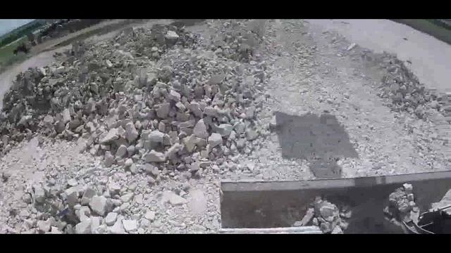 Вид из кабины экскаватора.Работа по выкапыванию карьера с видом от первого лица