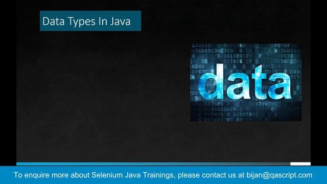 What is an IDE? IDE stands for Integrated Development Environment Software for building applications that combine common developer tools into a single GUI It consists of: Source code editor to write code in different languages Debugging tools to inspect code Automated build processes for languages including code compilation Syntax Highlighting Autocomplete What is Java? Java is a Programming Language Programming language is a set of instructions for computer to perform some specific tasks. We can create different types of applications with Java: WEB APPLICATIONS DESKTOP APPLICATIONS WEB SERVERS EMBEDDED SYSTEMS MOBILE APPLICATIONS Java is a platform independent language Java is a strongly typed language and case sensitive We can run Java programs on all operating systems: Windows Mac OS Linux Java Components: We need JDK to start development in Java JDK stands for Java Development Kit JDK allows us to create Java Programs JDK also contains JRE (Java Runtime Environment) JRE enables us to run our Java programs JVM (Java Virtual Machine) is a subset of JRE. It is a run-time engine which runs the java applications. It calls the main method present in a java program. Data Types In Java: Data is information which is stored and processed by a computer Pieces of data can be represented in code using data types Java classifies different pieces of data with data type based on their value. Primitive Data Types: boolean – true or false value ( for example, light is on or off) int – whole number ( for example, your age) double – decimal number (for example, percentage of marks) char – single letter (for example, initials or gender) Reference Data Types (Non-Primitive): class, interface, String, Arrays Variables in Java: Variables are used to store data values Types of variables: Local variables – Can be used in the same method where it is declared Static variables – Can be used without creating an object of the class where it is declared Instance variables – Can be used by creating an object of the class where it is declared To enquire more about Selenium Java Trainings, please contact us at bijan@qascript.com
