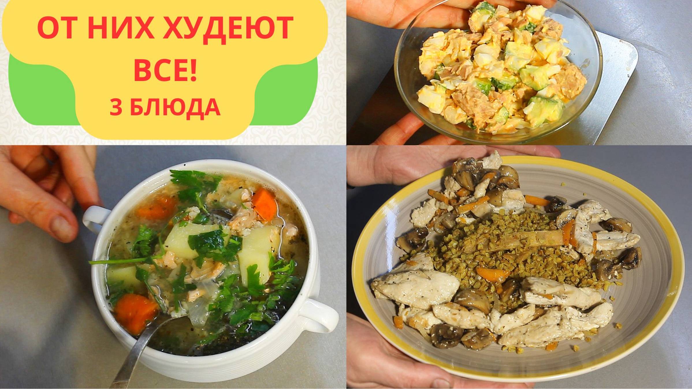"3 блюда для похудения: салат, суп и гречка с куриной грудкой".