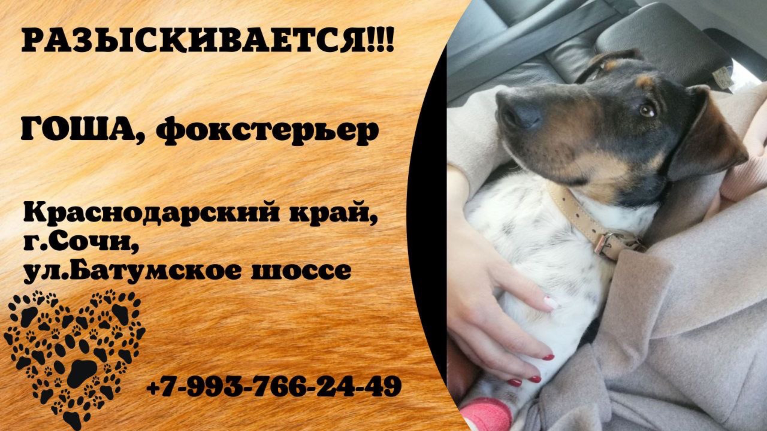 Краснодарский Сочи Пропала собака В марте потерялся фокстерьер Гоша. Его очень ждут дома. Если кто нибудь его видел пожалуйста позвоните по телефону. Ул.Батумское шоссе. 89937662449-Кристина пропала Инфо: https://vk.com/wall-198815410_189459 #пропала_собака#краснодарский#сочи