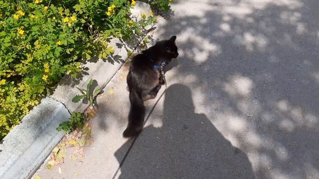 Котик Мишка гуляет возле дома и старается больше быть в теньке.