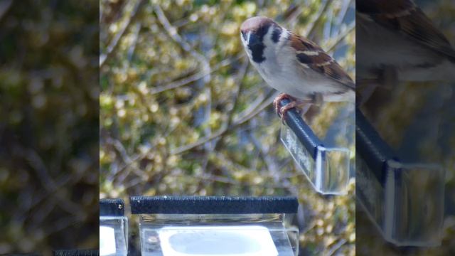 Воробьи пьют воду
