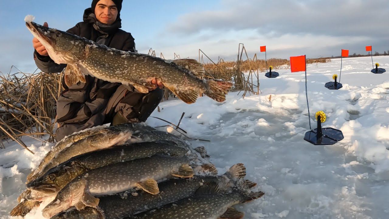 Пришел на рыбалку рано утром, и к рассвету все жерлицы были уже расставлены. И сразу же на рассвете начали клевать монстры! Рыбалка на жерлицы.