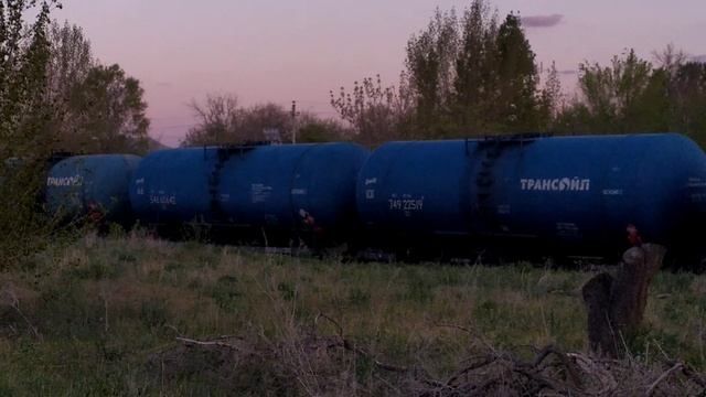 2ТЭ25Км - 0311 с наливным поездом.