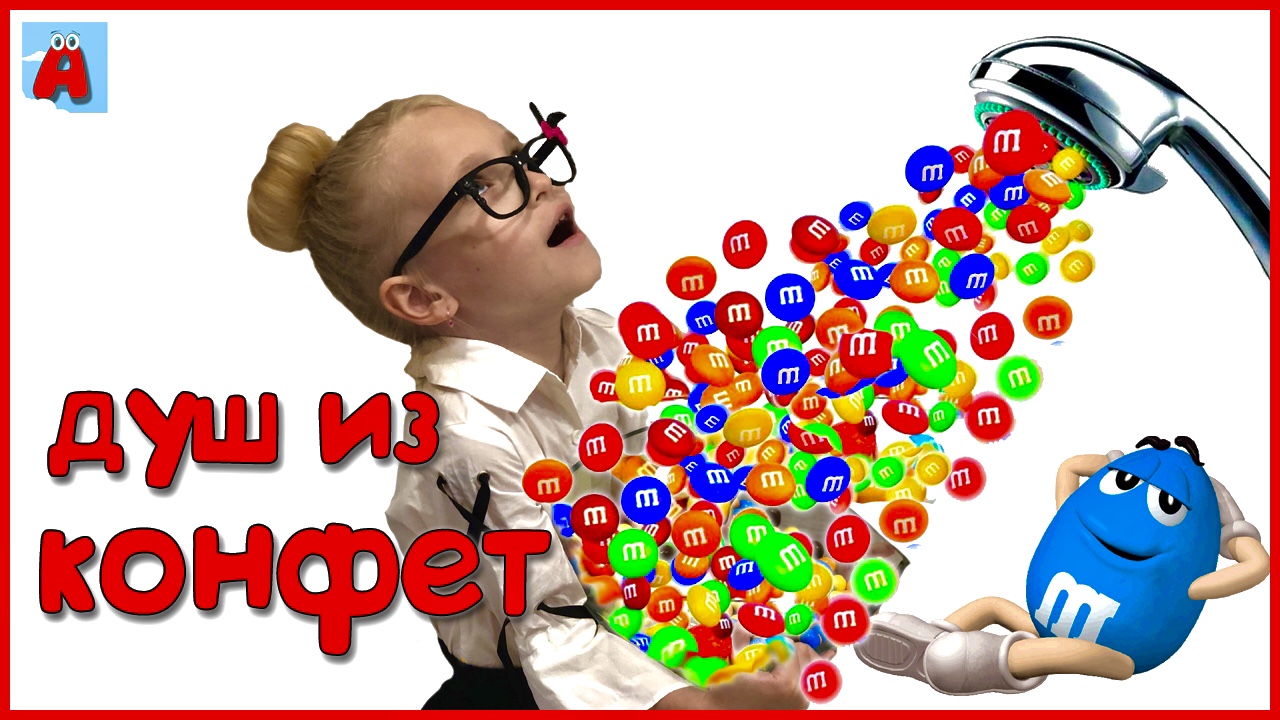 AriШОК и Ева веселые соревнования и челлендж Ева хочет конфеты или Волшебный душ из m&m's