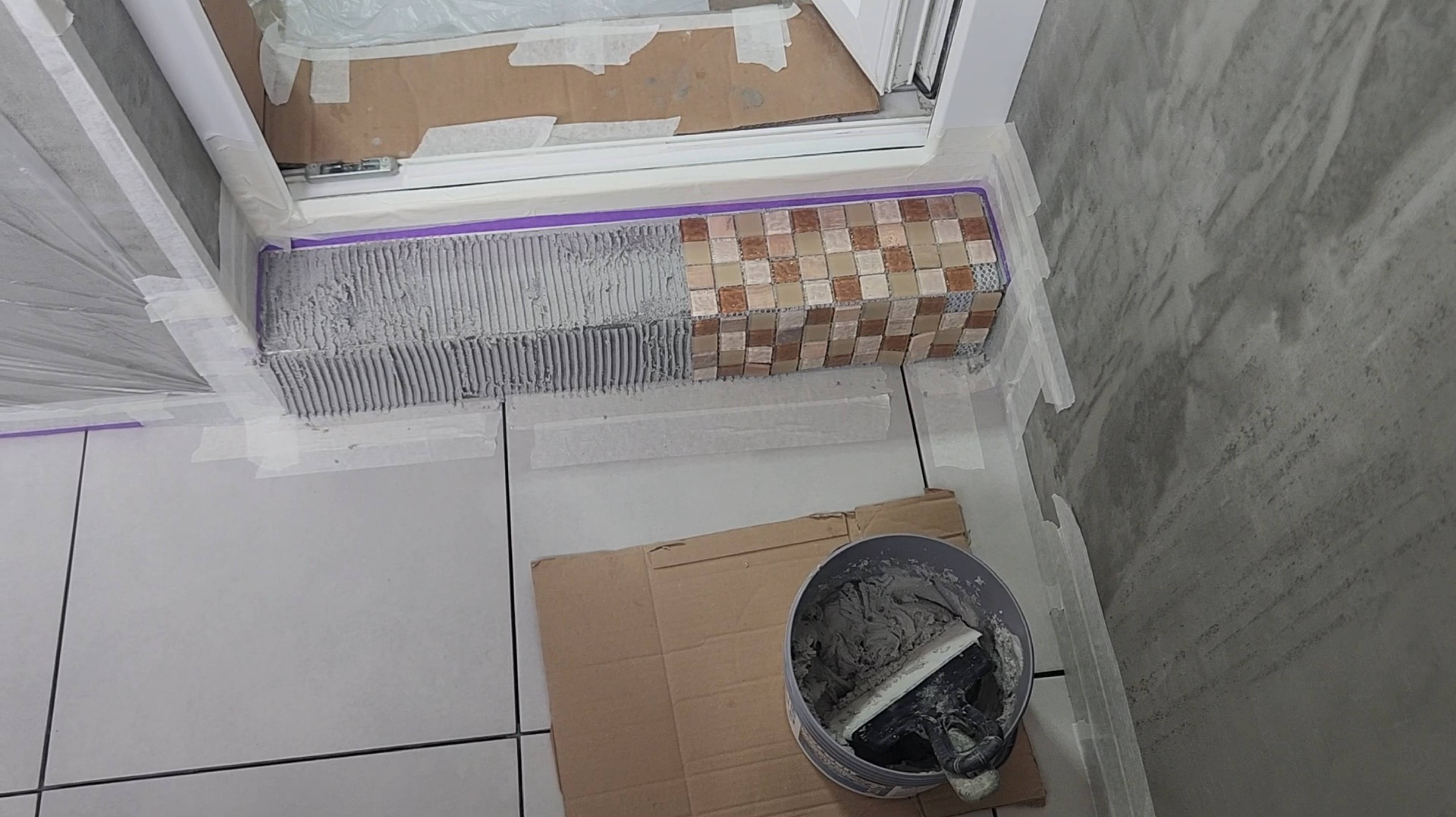 Балкон в стиле лофт: укладка мозаики эпоксидной затиркой Ceresit CE 89 серый бетон 🔪 🪣 🧱