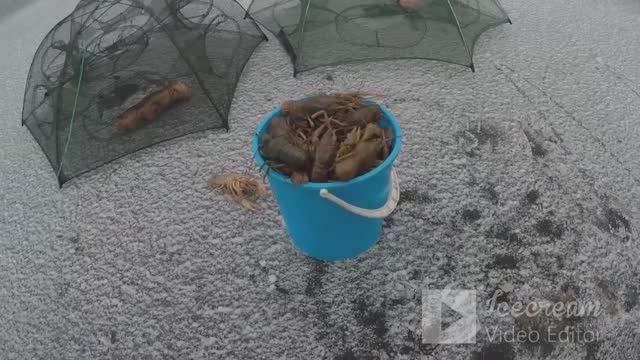 ловля раков зимой.ставим раколовку