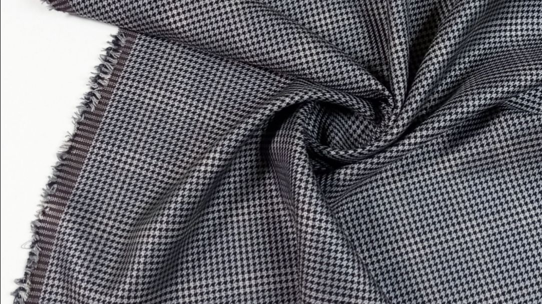 Ткань 2-сторонняя шерсть с шёлком Италия, 537 серо-черная гусиная лапка с клеткой