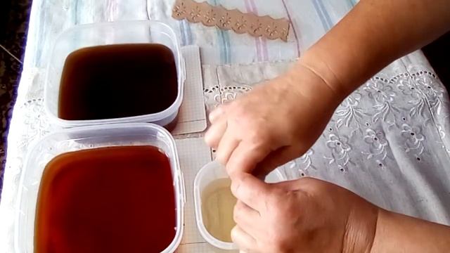 Когда нет в наличии химических красителей, можно воспользоваться теми средствами, которые дают стойкий цвет. Листья и стебли растений, напитки) Например, кофе или чай. Чай и кофе прекрасно красят ткань, если брать горячий настой и прокипятить к нём ткань.Я окрашивала кружево из вискозы в холодном растворе.На 0.7 литров воды брала 1 стол.ложку чайной заварки и 1 стол.ложку кофе Жоккей.Приготовила два раствора, остудила.Отрез кружева оставила в растворе на 40минут, прополоскала, высушила.