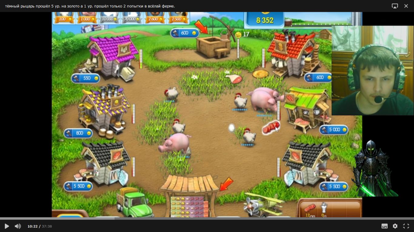тёмный рыцарь прошёл 5 ур. на золото а 1 ур. прошёл только 2 попытки в весёлай ферме. 10 серия.