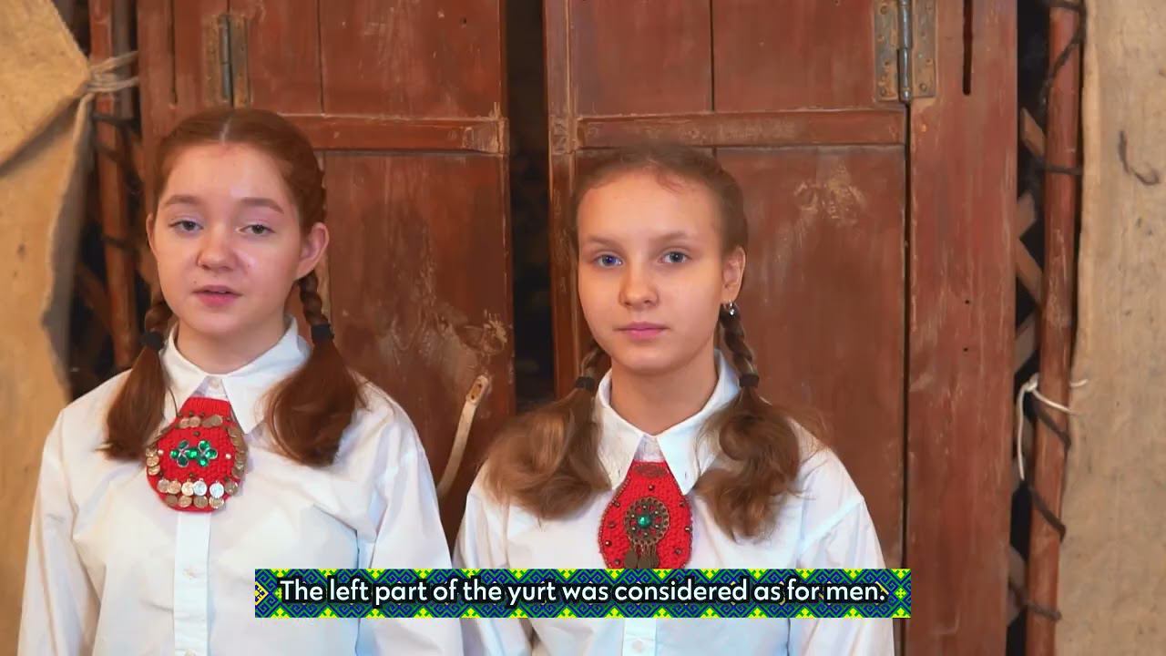 Номинация "Мой город, моя страна, мой мир". МАОУ "Физико-математический лицей № 93" ГО г. Уфа. Руководитель: Шатилова Юлия Хамитовна. Этнографический музей. Девочки, одетые в национальные башкирские костюмы, показывают и рассказывают о юрте - традиционном жилище древних башкир.