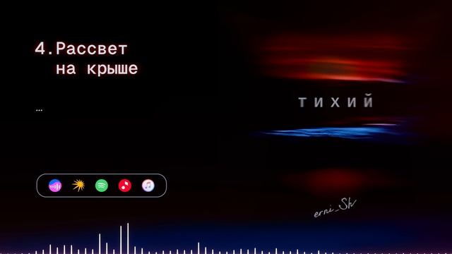 Слушать erni_Sh: Apple Music → https://music.apple.com/ru/artist/erni-sh/1459539801 Яндекс.Музыке → https://music.yandex.ru/artist/7241455 VK → https://vk.com/artist/erni_sh МТС Музыка → https://music.mts.ru/artist/7241455 Spotify → https://open.spotify.com/artist/5tAGQ8IQL7UxpBAiqwmYTo Звук → https://zvuk.com/artist/209585585 Youtube Music → https://music.youtube.com/channel/UCsW_eMwzl19VpmccloMtQtQ Альбом Тихий: https://band.link/erni_Sh_silent Новая работа петербургского звукорежиссера Эрнеста Шеремета. Музыку erni_Sh отличает кинематографичный арт-рок саунд. А поэтика как интимный монолог: каждая песня - тотем любви. "Тихий" - для тех, кому нужна смелая независимая музыка. ⊹──⊱✠⊰──⊹ В записи принимали участие: Барабаны • Дмитрий Гайнутдинов Бас • Олег Полевщиков Мандолина • Анна Понидельченко Скрипичный квартет «Intelligent Quartet» в составе: Скрипка I • Ангелина Козлова Скрипка II • Ангелина Фирсулова Альт • Надежда Чумовицкая Виолончель • Даша Костина В роли Сентябрины • АНТИЛЛА https://band.link/alyaantilla ⊹──⊱✠⊰──⊹ Записано на студии студии Red Wave Звукорежиссеры • Виктор Прохоров, Данила Данилов и Владимир Лужбинин Запись вокала произведена на студии Интерзвук Звукооператор • Алина Глазкова Обложка • Полина Звягинцева Лейбл • ПОЛИГОН RECORDS ⊹──⊱✠⊰──⊹ 00:00 - Сестра 04:24 - Морская 08:48 - Белая смерть 11:33 - Рассвет на крыше 15:49 - Сентябрина (feat Антилла) 20:48 - Разговоры с самим собой 27:10 - Тотем