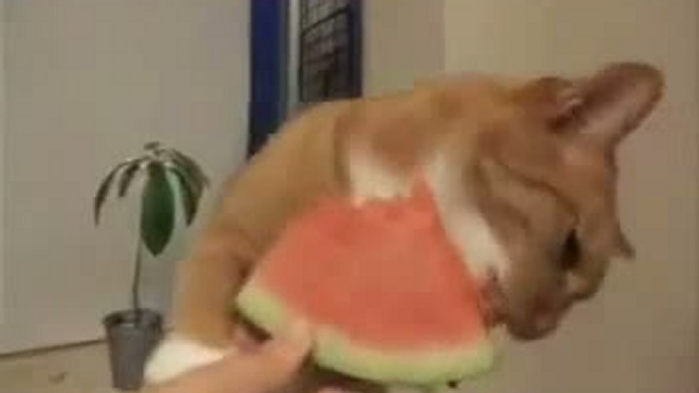 котек хавает арбуз! Жесть!