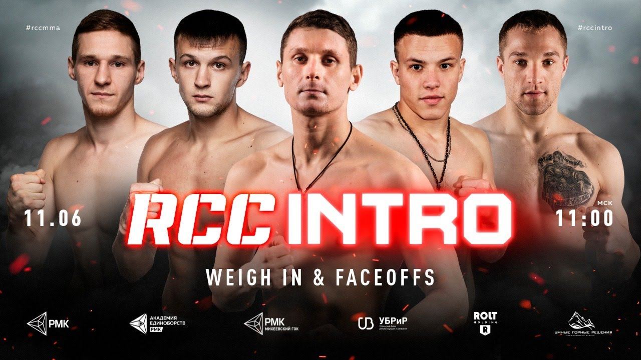 «Русская медная компания» и Russian Cagefighting Championship представляют 13-й турнир по смешанным единоборствам и кикбоксингу RCC: Intro. Шоу состоится 12 июня на арене Академии единоборств РМК — зрителей ждут 13 поединков с участием бойцов из России, Испании и Бразилии. В главном поединке вечера в клетке сойдутся бойцы полусреднего веса Борис Медведев (10-2) и Андре Рикардо (10-3-2). Медведев уже отметился в Екатеринбурге досрочной победой над местной звездой Ильясом Хамзиным и сразу получил второй бой. Рикардо пришел в ММА через шоу The Ultimate Fighter, где уступил в четвертьфинале, — сейчас он входит в топ-25 сильнейших бойцов Бразилии в своем весе. Со-главный бой вечера пройдет по правилам кикбоксинга. Максим Сульгин встретится с бывшим бойцом Glory Максимо Суаресом. Сульгин — экс-чемпион Fair Fight в легком весе и многократный победитель чемпионатов России, Суарес — чемпион мира и многократный чемпион Испании. Полный кард 1 пара. Профессиональный кикбоксинг. Рейтинговый бой в категории до 67 кг . Три раунда Фризюк Максим (1-1), Архангел Михаил, Екатеринбург, Россия Иванов Михаил (11-1), Сочи Стар, Сочи, Россия 2 пара. Профессиональный кикбоксинг. Рейтинговый бой в категории до 65 кг .Три раунда Шардаков Игорь (3-0), Архангел Михаил, Екатеринбург, Россия Абдулаев Рамазан (1-0), Сочи Стар, Сочи, Россия 3 пара. Профессиональный ММА. Рейтинговый бой в категории до 61,2 кг. Три раунда Магомедов Хайрулла (3-1), Архангел Михаил, Екатеринбург, Россия Ловниканцев Николай (3-0), "Островский 13" и "Голден Мастер", Улан Удэ, Россия 4 пара. Профессиональный кикбоксинг. Рейтинговый бой в категории до 91 кг . Три раунда Осипов Роман (дебют), Архангел Михаил, Екатеринбург, Россия Абдуразаков Магомед 5 пара. Профессиональный кикбоксинг. Рейтинговый бой в категории до 70 кг . Три раунда Фатыков Эдуард (7-2), Архангел Михаил, Екатеринбург, Россия Украинец Владислав (10-4), Tuff, Соликамск, Россия 6 пара. Профессиональный ММА. Рейтинговый бой в категории до 65,8 кг. Три раунда Коробов Равиль (7-0), Рать, Тюмень, Россия Кумахов Руслан (5-0), K-dojo, Нальчик, Россия 7 пара. Профессиональный кикбоксинг. Рейтинговый бой в категории до 77,1 кг. Три раунда Курганский Игорь (3-1), Архангел Михаил, Екатеринбург, Россия Бернард Плавец (28-11-2), PriMMAt Gym Praha, Прага, Чехия 8 пара. Профессиональный ММА. Рейтинговый бой в категории до 70,3 кг. Три раунда Ерастов Илья (4-2), Первая линия, Санкт-Петербург, Россия Алексеев Александр (4-3), спортивное сообщество RU BOXING, Воронеж, Россия 9 пара. Профессиональный кикбоксинг. Рейтинговый бой в категории до 70 кг . Три раунда Курбатов Никита (9-2), Архангел Михаил, Екатеринбург, Россия Косых Сергей (10-5), Федерация Тайского Бокса Кузбасса, Кемерово, Россия 10 пара . Профессиональный ММА. Рейтинговый бой в категории до 83,9 кг. Три раунда Шелест Самуил (7-1), ММА Север, Воркута, Россия Киреев Илья (6-0), Сечь ПРО, Санкт-Петербург, Россия 11 пара . Профессиональный кикбоксинг. Рейтинговый бой в категории до 70 кг. Три раунда Ибрагимов Салимхан (22-6-1), Архангел Михаил, Екатеринбург, Россия Сподаренко Максим, Беларусь 12 пара . Профессиональный кикбоксинг . Рейтинговый бой в категории до 77 кг . Три раунда Сульгин Максим (16-4), Архангел Михаил, Екатеринбург, Россия Максимо Суаэрес (56-7), CDC DAVID PEÑA, Лас-Пальмас-де-Гран-Канария, Испания 13 пара . Профессиональный ММА. Рейтинговый бой в категории до 83,9 кг. Три раунда Медведев Борис (10-2), Сечь ПРО, Санкт-Петербург, Россия Вит