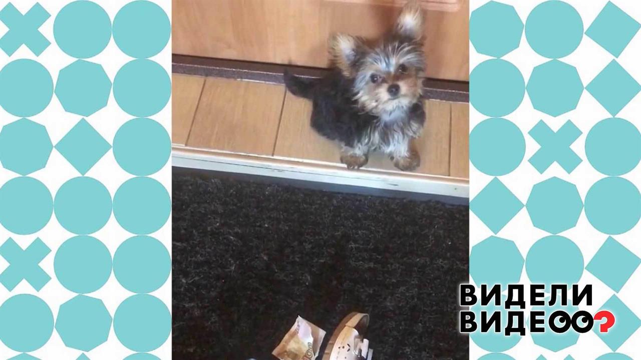 Йоркширский терьер Кира ворует деньги из хозяйской сумочки.
