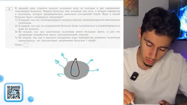 В жаркий день туристы налили холодную воду из колодца в две одинаковые стеклянные бутылки - №20313