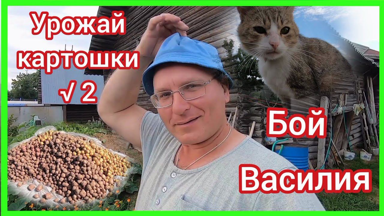 Выкапываем картошку на втором участке. Василий защищает свою территорию.