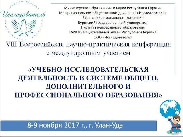 VIII Всероссийская научно-практической конференция с международным участием «УЧЕБНО-ИССЛЕДОВАТЕЛЬСКАЯ ДЕЯТЕЛЬНОСТЬ В СИСТЕМЕ ОБЩЕГО, ДОПОЛНИТЕЛЬНОГО И ПРОФЕССИОНАЛЬНОГО ОБРАЗОВАНИЯ» 8-9 ноября 2017 г. Улан-Удэ