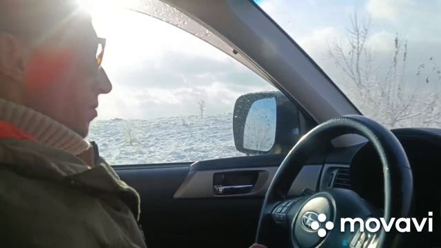 Музей замело снегом. Все деревья покрылись инеем.Немного забуранило дорогу.