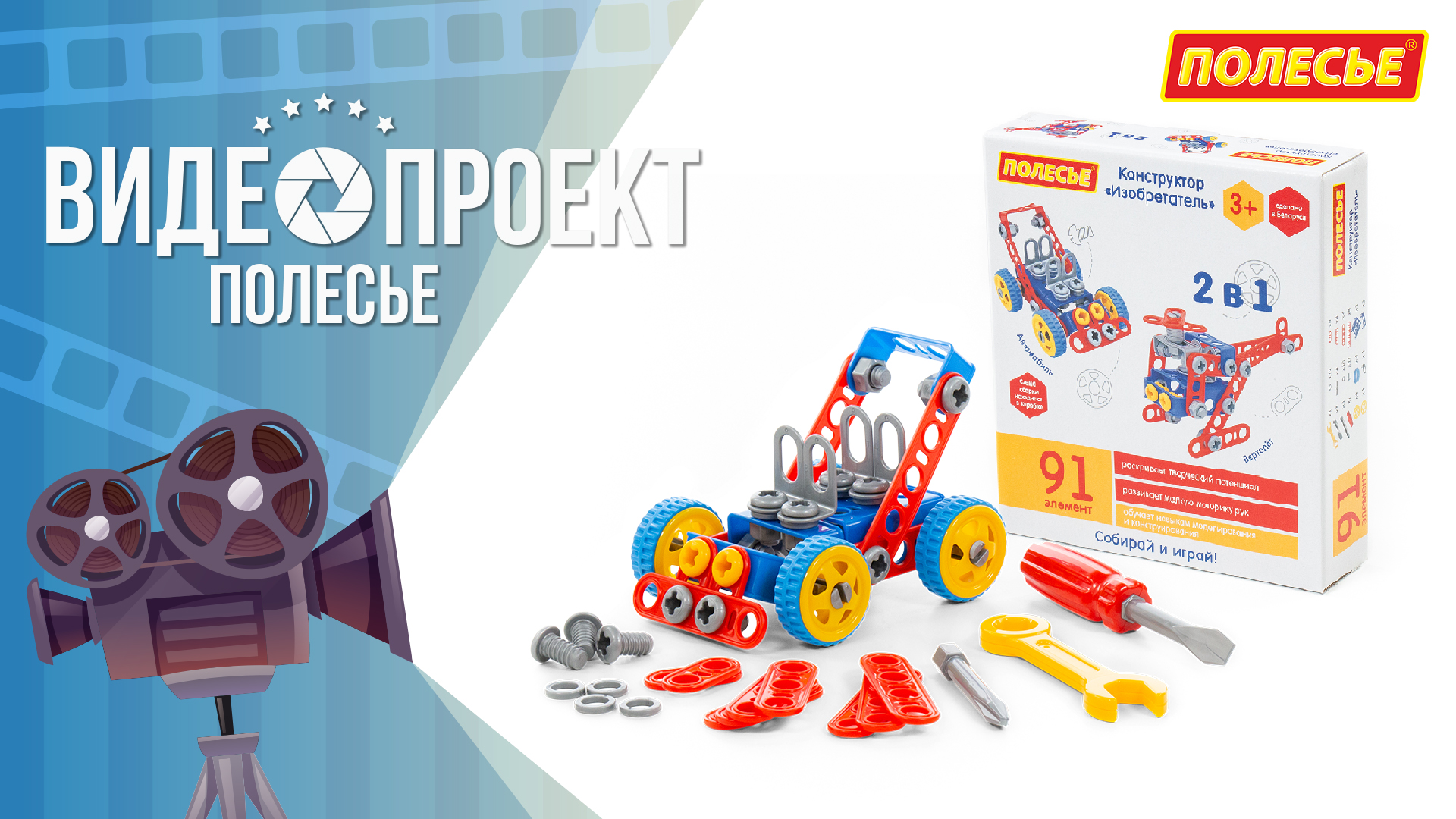 Конструктор "Изобретатель" (91 элемент) (в коробке) Артикул 72986 Конструктор «Изобретатель» (91 элемент) от фабрики «Полесье» отличается особым функционалом. Элементы выполнены в виде планок, пазы которых соединяются при помощи болтов и гаек. В комплект конструктора входят подробные инструкции, следуя которым можно собрать модели, представленные на упаковке игрушки. При этом ребёнок будет развивать усидчивость и внимание. Игра с данной серией конструкторов не ограничивается сборкой моделей по инструкции, дети всегда могут попробовать создать что-то новое, используя свою фантазию, пространственное и ассоциативное мышление. Игры с конструктором могут определить будущую профессию малыша, раскрыв в нём творческий потенциал. Все конструкторы серии «Изобретатель» совершенно разные, поэтому из них можно собрать целую коллекцию, которая превратится в творческую мастерскую Вашего ребёнка! Подробнее познакомиться с продукцией компании «Полесье» можно на нашем сайте: https://www.polesie-toys.com/catalog/seriya_izobretatel/