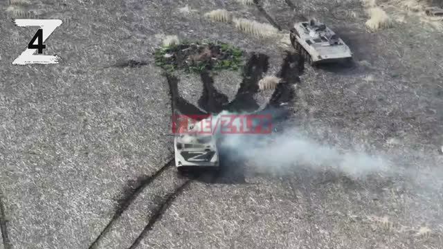 Эвакуация экипажа подбитой БМП/ЛНР