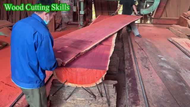 Распил бревна из красного дерева. Камбоджа.