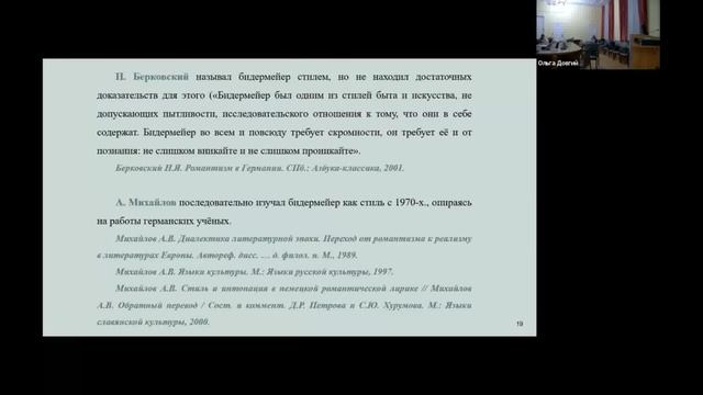 Доклад Елены Зейферт об идиллии как истоке высокого бидермейера на конференции памяти А.Е. Махова.