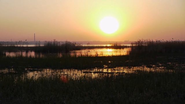 Закат на озере Смолино, природные звуки, пение птиц, звуки лягушек. #закат #озеро #птицы #вечер #камыш #смолино