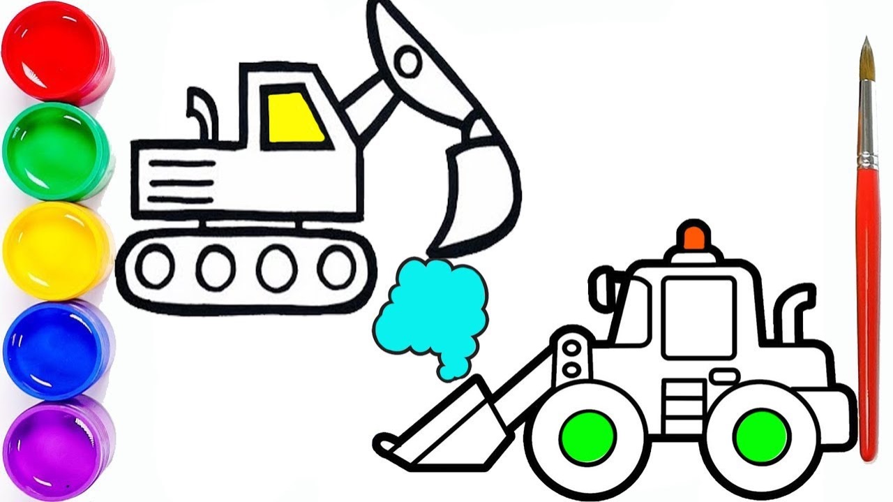 Мультик раскраска для детей и малышей. Новый сборник рисунков. Как нарисовать машину грузовик и экскаватор #рисунок#раскраска#мультик#сборникдлядетей