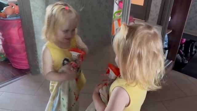 Ника на уборке.