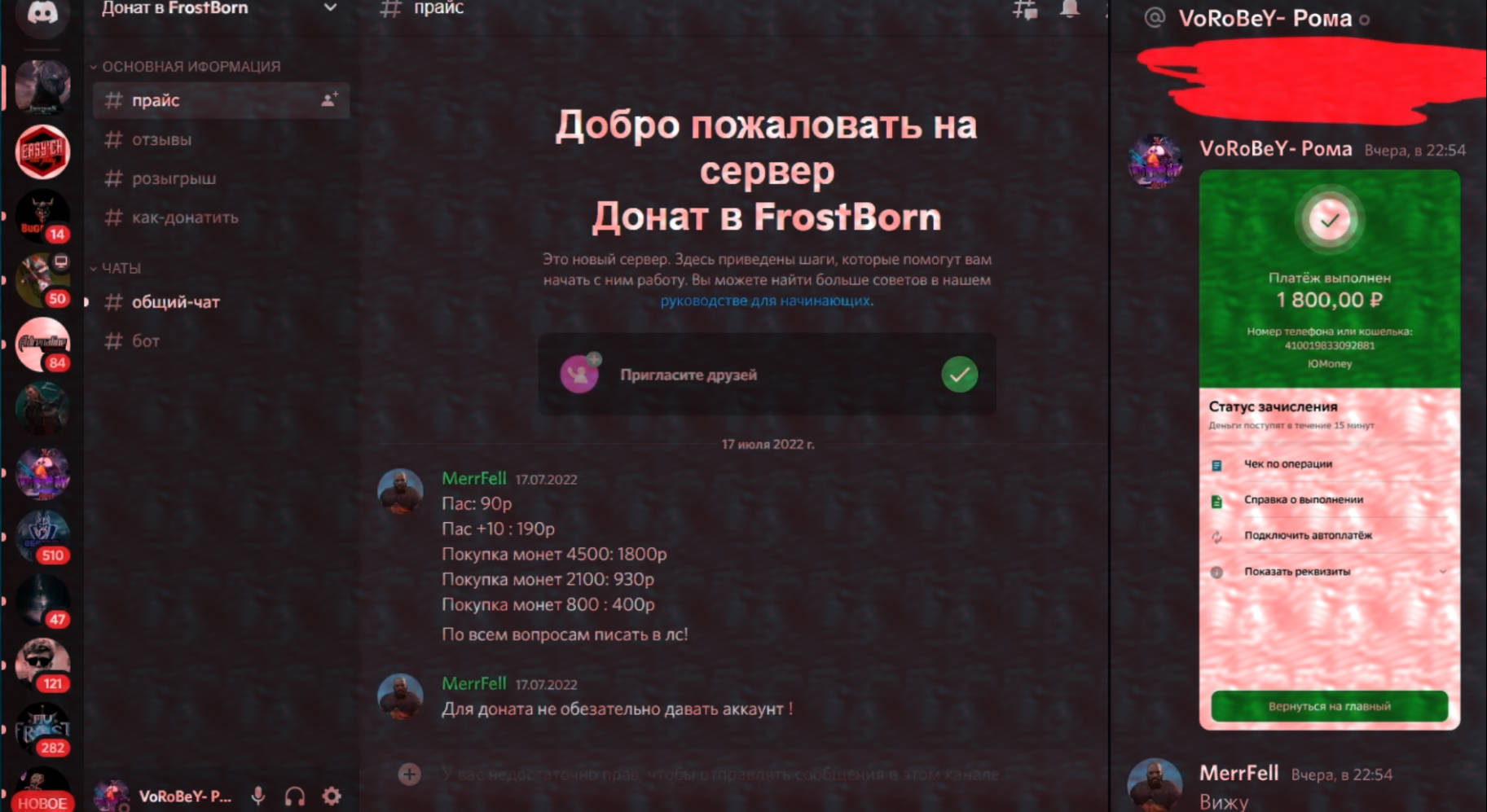 ☑️ Дискорд сервер для дешёвого доната !!! https://discord.gg/cY7MsUEbEm ✅ Поддержать стримера ▶ https://www.donationalerts.com/r/vorobey2896 ✅ Поддержать на СберБанк ▶ 2202 2012 5785 9997 ? Смотри на Trovo и Выигрывай Голду ▶ https://trovo.live/VoRoBeY007 ✅ Группа ВКонтакте ▶ https://vk.com/vorobey2896 Почта для связи: ☑️ Для коммерческих предложений ▶ Vorobei2804@gmail.com ✅ Наш Дискорд сервер►: https://discord.gg/27cKV3K7BW Информация обо мне: ● Привет! Меня зовут Роман, мне 26 лет, являюсь партнером компании КЕФИР. Стараюсь что-то изменить в этом злом мире) #Frostborn#ActionRPG#фростборн#воробей#рейд#пвп