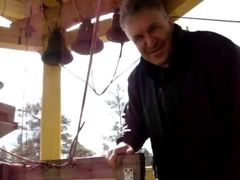 Звонарь Александр Осипов на колокольне Петропавловской церкви в Вырице .