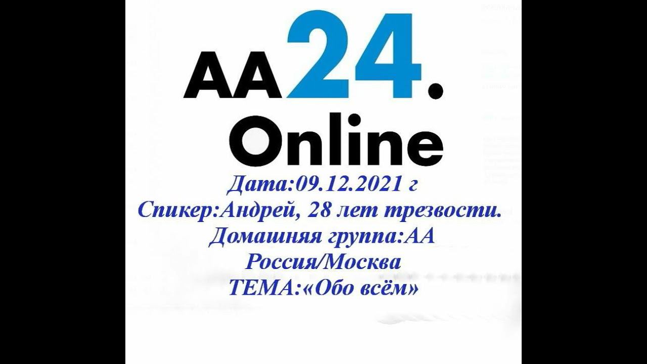 9.12.2021 Андрей, 28 лет трезвости. Россия/Москва Домашняя группа:АА ТЕМА:«Обо всём».