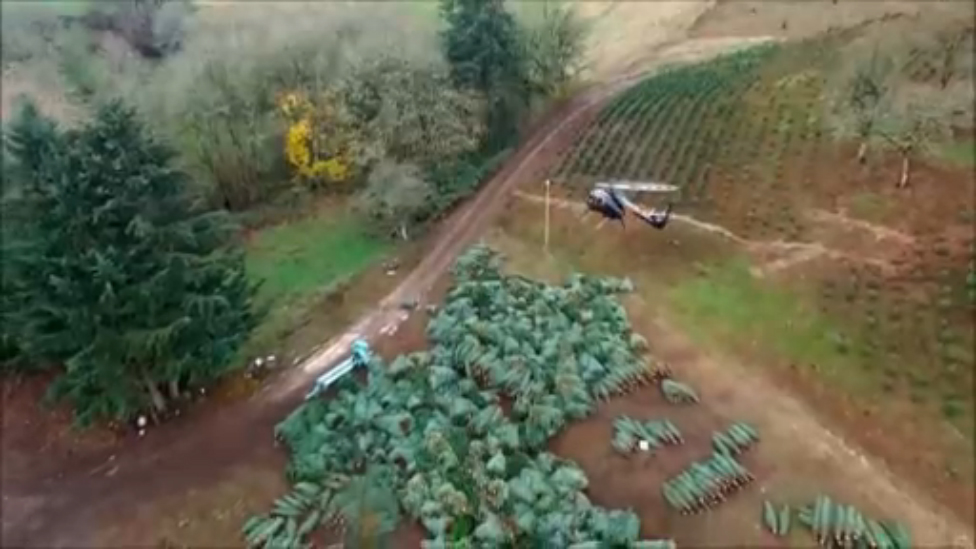 Пилот вертолета MD-600N мастерски транспортирует рождественские ёлки.