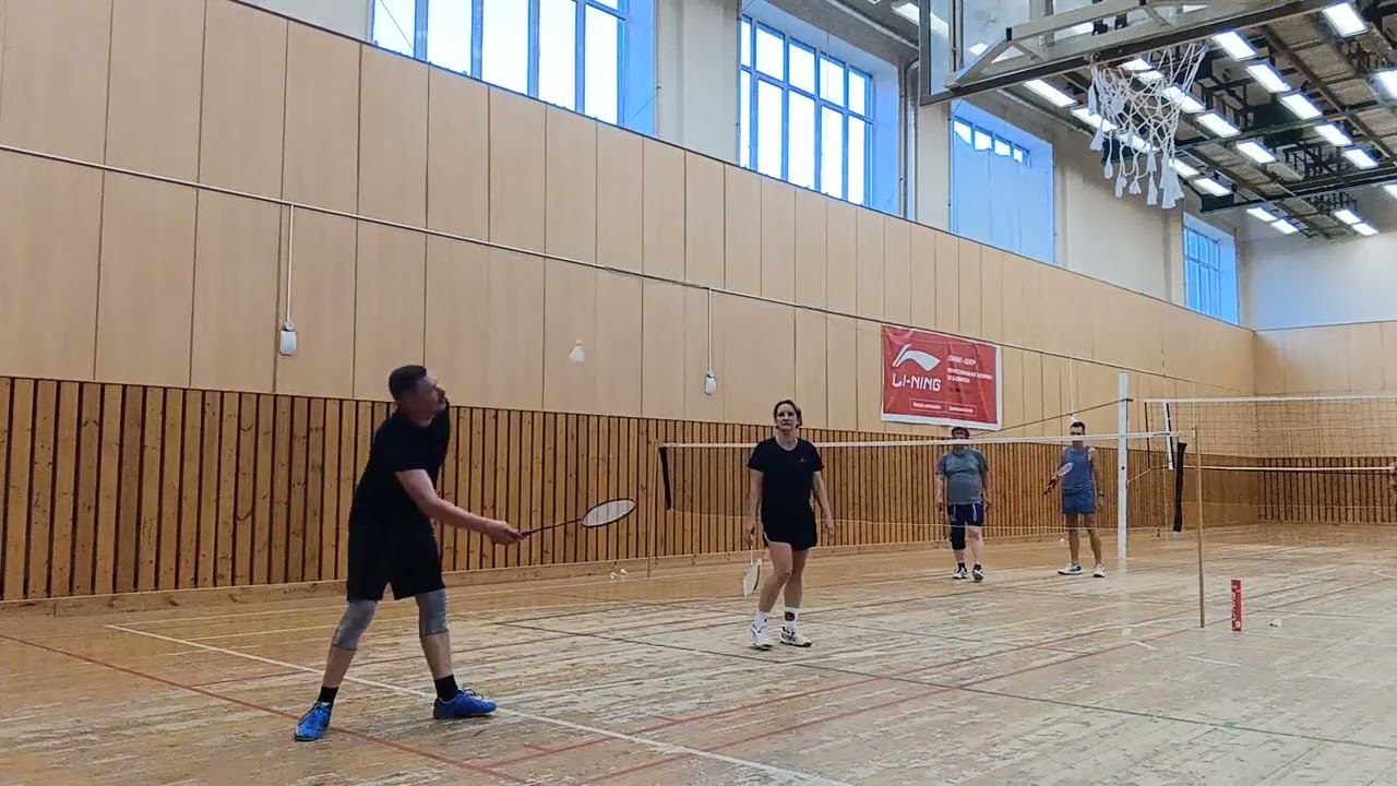 Тренировочная игра в бадминтон через сетку. Играют любители, новички и опытные бадминтонисты. Игра в Лестехе (МГУЛ ранее, сейчас называется филиалом Бауманки). Хочешь тоже играть? Приходи - https://badminton77.ru/map/4/ #badminton #badmintonlovers #badmintonrussia #lesteh #ЛесТех #бадминтон