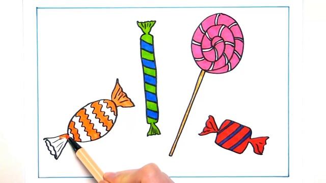 Как нарисовать леденец на палочке, изучая цвет фломастерами для детей - Kids Learning Art