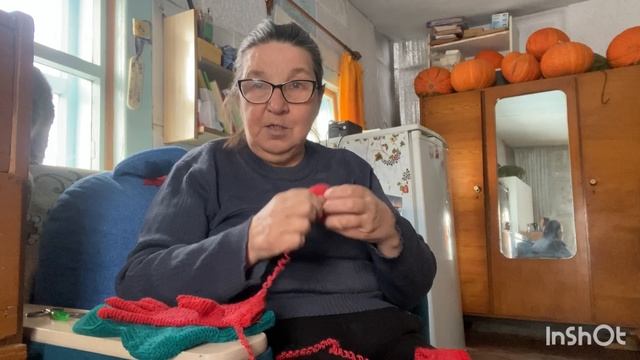 Бабушка вяжет Дрова валяются с улице