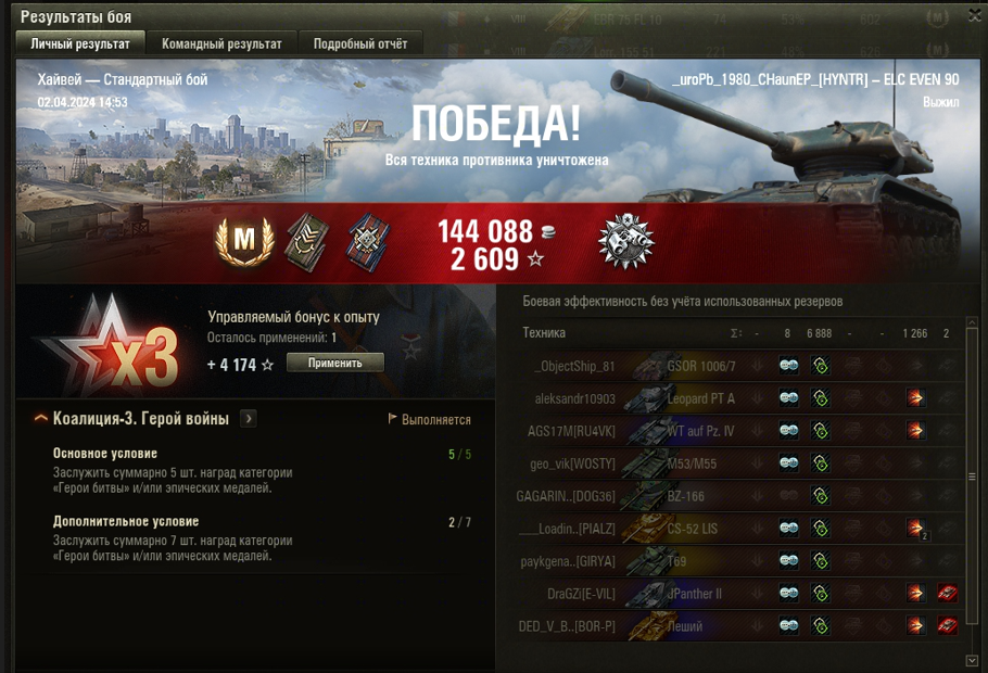 ХАЙВЕЙ МАСТЕР на ELC EVEN 90 ОПЫТ: 1391 СУММАРНЫЙ УРОН: 8154 медаль ДОЗОРНЫЙ
