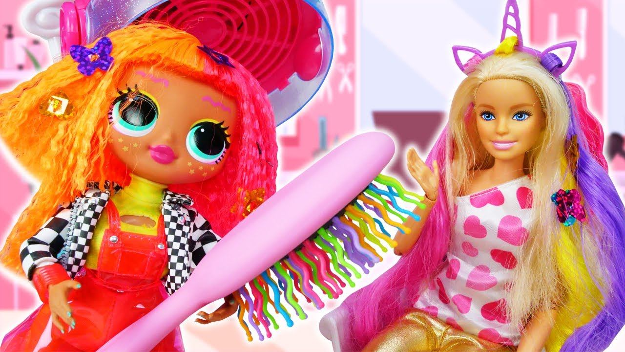 Куклы БАРБИ и ЛОЛ Сюрприз в Салоне красоты! - Весёлые игры макияж и причёска. Видео куклы Barbie