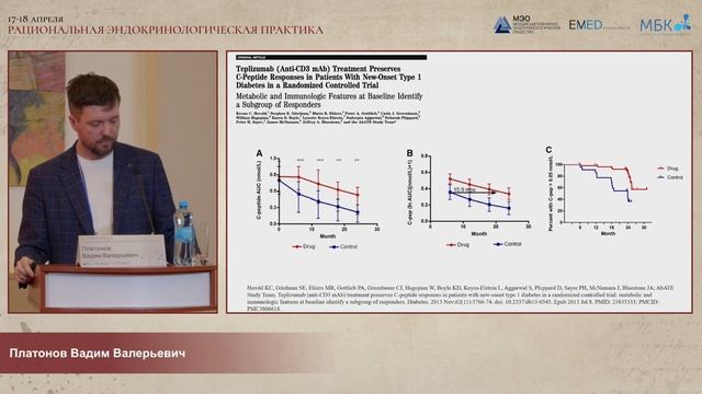 Рациональная эндокринологическая практика (РЭП) - Москва, 17-18 апреля Первая Конференция Междисциплинарного Эндокринологического общества ЧАСТЬ 5 Детская эндокринология: о чем мы редко говорим на конгресса 1. Идеология интенсивной терапии ДКА с позиции эндокринолога и эффективность его профилактики у детей со стажем СД1, использующих СНМГ (Кияев А.В.) 2. Искусственный интеллект в современной детской диабетологии (Соколова (Патракеева) Е.М.) 3. Точки приложения и перспективы терапии сахарного диабета 1 типа моноклональными антителами (Платонов В.В.) 4. Дифференцированный рак щитовидной железы у детей: радиотерапия и радиойодрезистентность (Слащук К.Ю.) 5. Всем ли нужен витамин D? (Тюльпаков А.Н.)