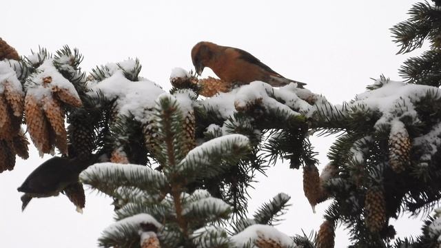 Клёст, самец, наблюдение птиц в Великом Новгороде, 28 октября 2023