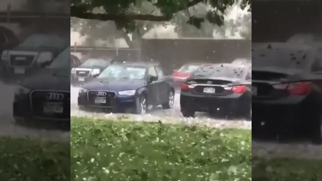 Град бьёт по машинам. Непогода разразилась большим градом, побившим припаркованные на открытом месте автомобили. #град #ураган #дождь