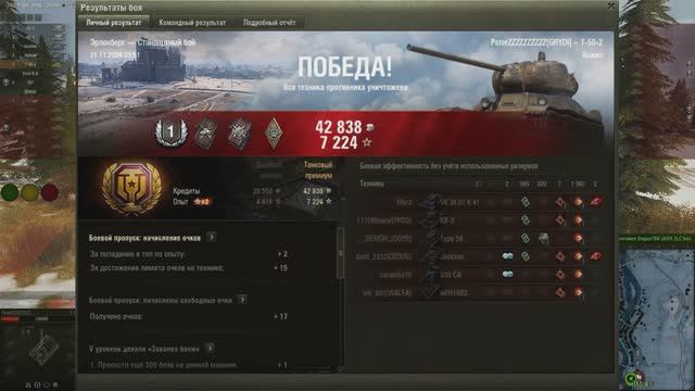 Набегался, ну, и настрелялся на ~2000 урония. 20241121_2351_ussr-R160_T_50_2_13_erlenberg