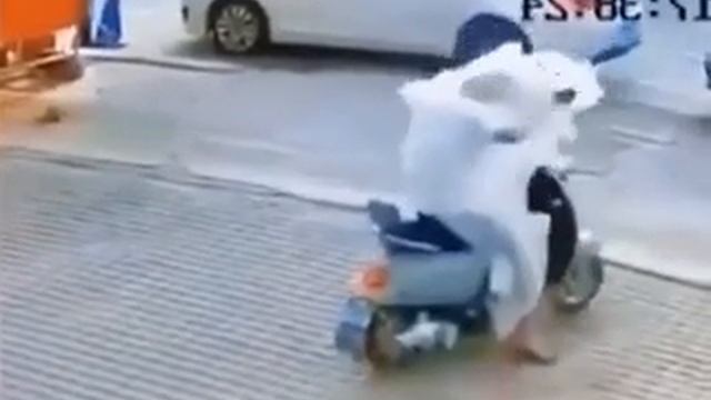 На видео попало нападение призрака на мопедиста