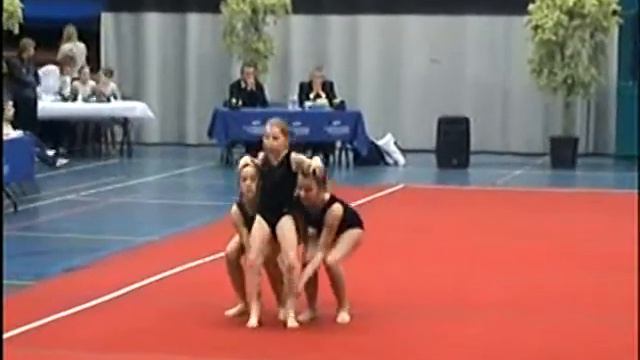 Acro D balans oefening Gym Haacht trio Julie Ketelaer, Manon Vande Zande en Joselien Van Laer te Eeklo op 26-01-2008. Dit was hun allereerste wedstrijd samen.
