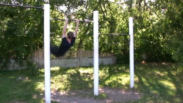 Соскок с перекладины на махе назад